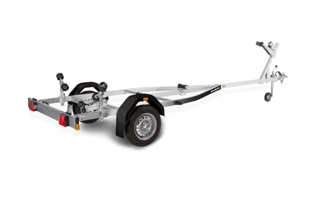Ubremset trailer med en aksel til mindre både op til 18 fod. Varmgalvaniseret chassis og vandtætte lejer for længere levetid og maksimal beskyttelse mod rust. Kablerne ligger beskyttet i trailerens chassis. Justerbart spiltårn for optimal søsætning af din båd. Med den dobbelte kølrulle med vip er det nemt for dig at at tilpasse traileren til din båd. Lygtebommen sikrer let og hurtig søsætning af din båd, og lygtebommen kan opbevares i bilens bagagerum under sejlturen. Traileren på billedet kan være vist med ekstraudstyr.